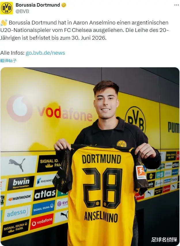 官方:多特蒙德宣布从切尔西租借签下了安塞尔米诺。交易为单纯租借英超联赛排名榜,不含买断条款。