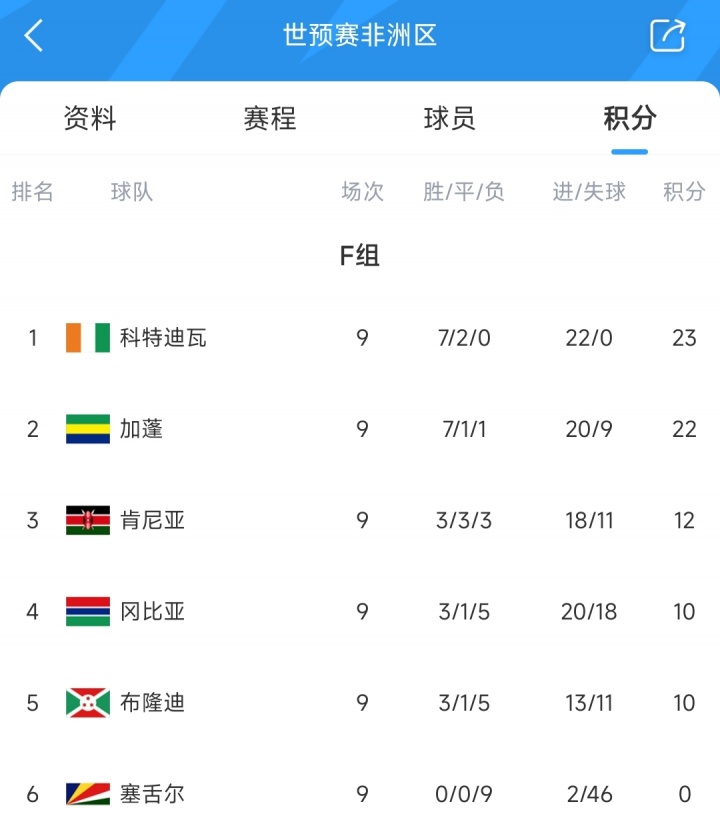 世预赛非洲区F组积分榜英超在线直播免费直播高清观看