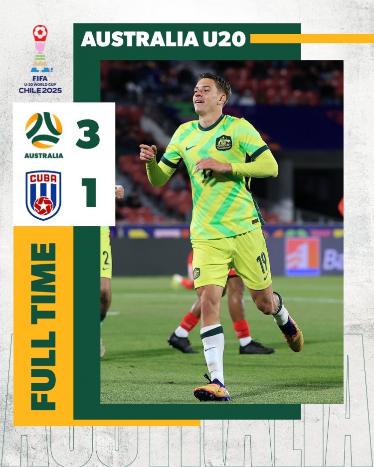 10月5日讯 世青赛小组赛最后一轮赛事 ,澳大利亚3-1击败古巴。